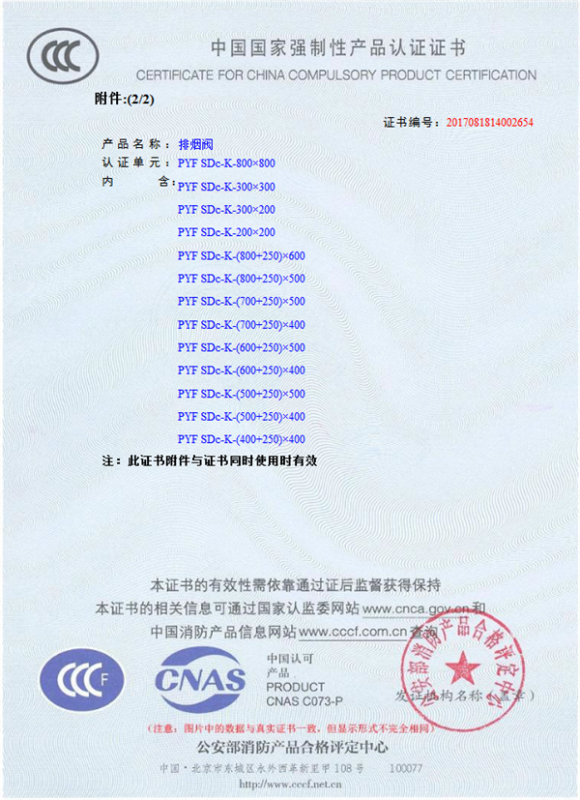 產(chǎn)品全通過國家消防檢測中心檢測,獲得CCC證書